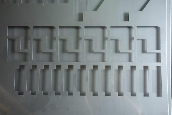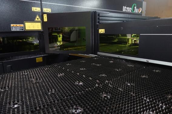 一枚の板から部品の元となる材料を切り出していきます。厚ものや精密な加工が必要なものはレーザ、大量生産品はパンチプレスと用途に応じて使い分けていきます。厚板はSS/SUS共にt12迄、ファイバレーザ機にて銅、真鍮、チタンの抜きもご相談に応じます。