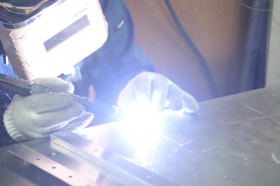 前工程から集められた部品達を溶接し最終的な形状に組み上げます。小型で単純形状であればロボット溶接機にて量産加工することもあります。市販部品(キャスタや丁番、ラッチ錠等)と組み合わせたりすることも可能です。